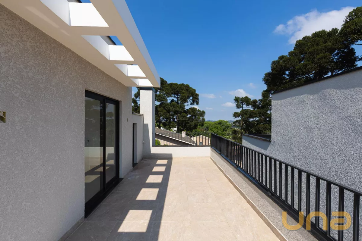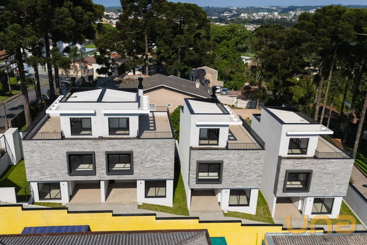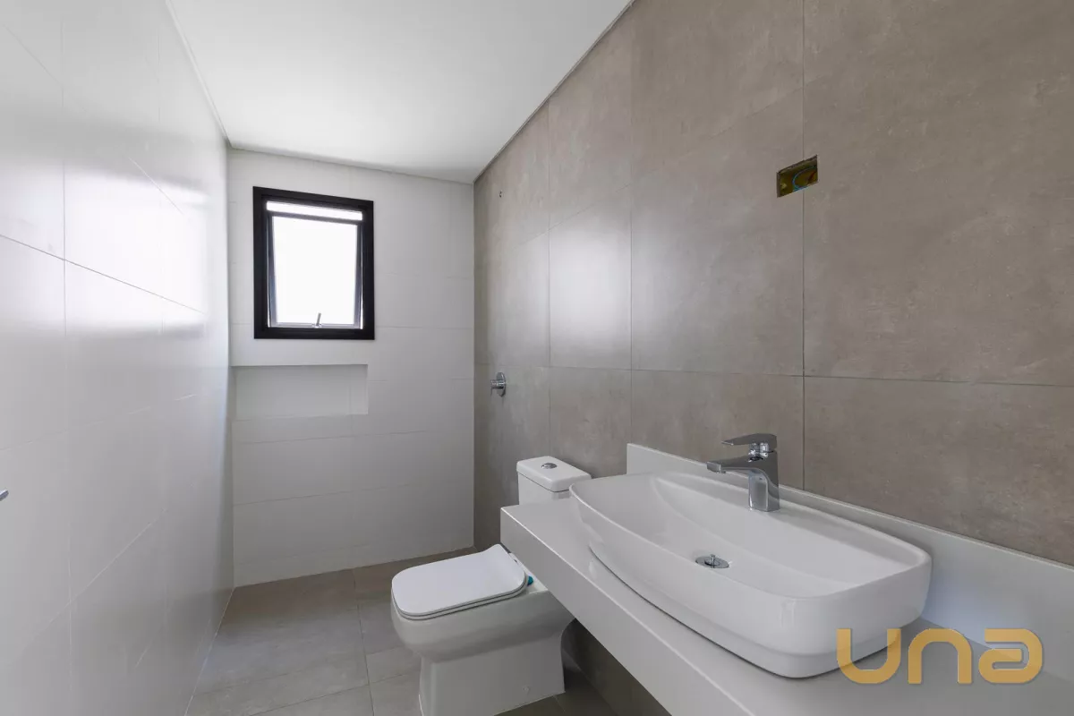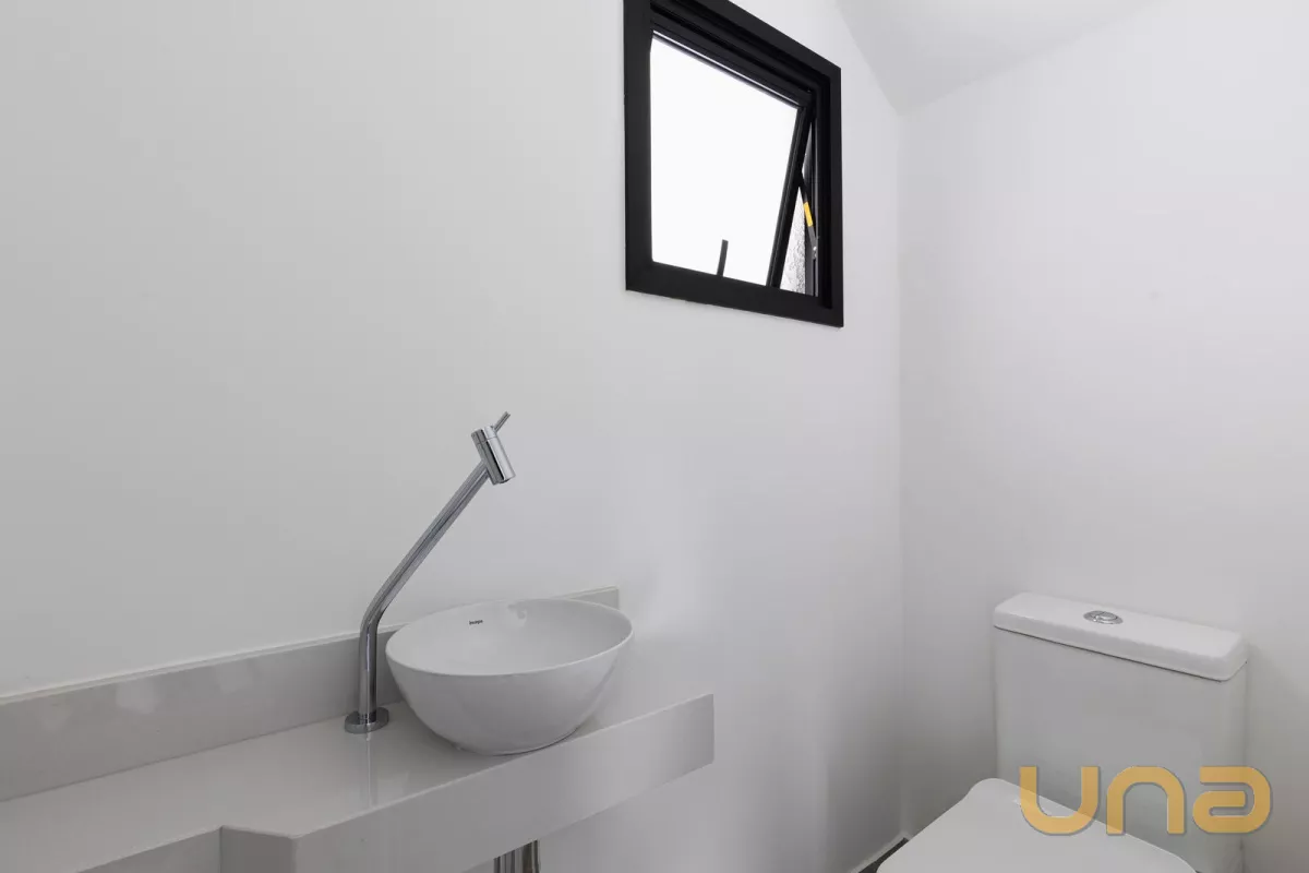 No pavimento térreo contem sala de estar e jantar, lavabo, cozinha, área de serviço e 1 vaga de garagem. O 1° pavimento é composto por 03 dormitórios, sendo 01 suíte, banheiro social. O 2° pavimento possui sala e um terraço externo com 21,68m².