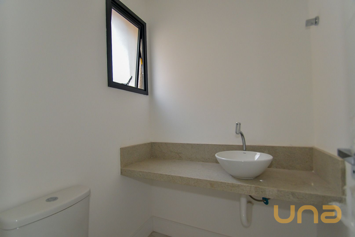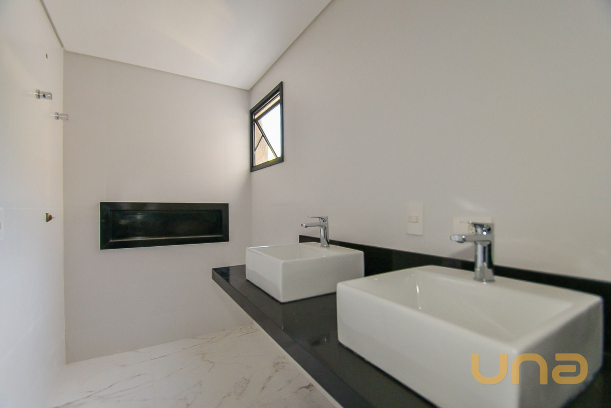 Pavimento Superior: 3 suítes, incluindo suíte master com sacada, espaço para closet e banheiro com pia dupla e acabamento de luxo.