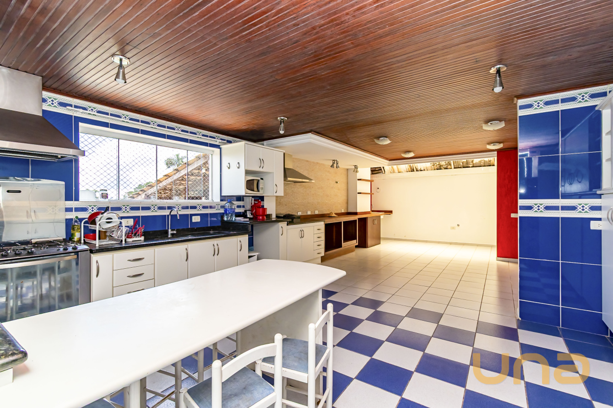 O imóvel dispõe de Sala para três ambientes com lareira, Cozinha ampla com pia e armários planejados, Sala de estar íntima com lareira, Escritório com armário. 1º andar: Cinco quartos sendo três suítes com banheira e um com sacada ampla, Sala de estar, Banheiro social. Área externa:Edícula ampla com portas de vidro, Churrasqueira a carvão com armários balcão e pia, Piscina, Área de serviço individualizada, Despensa