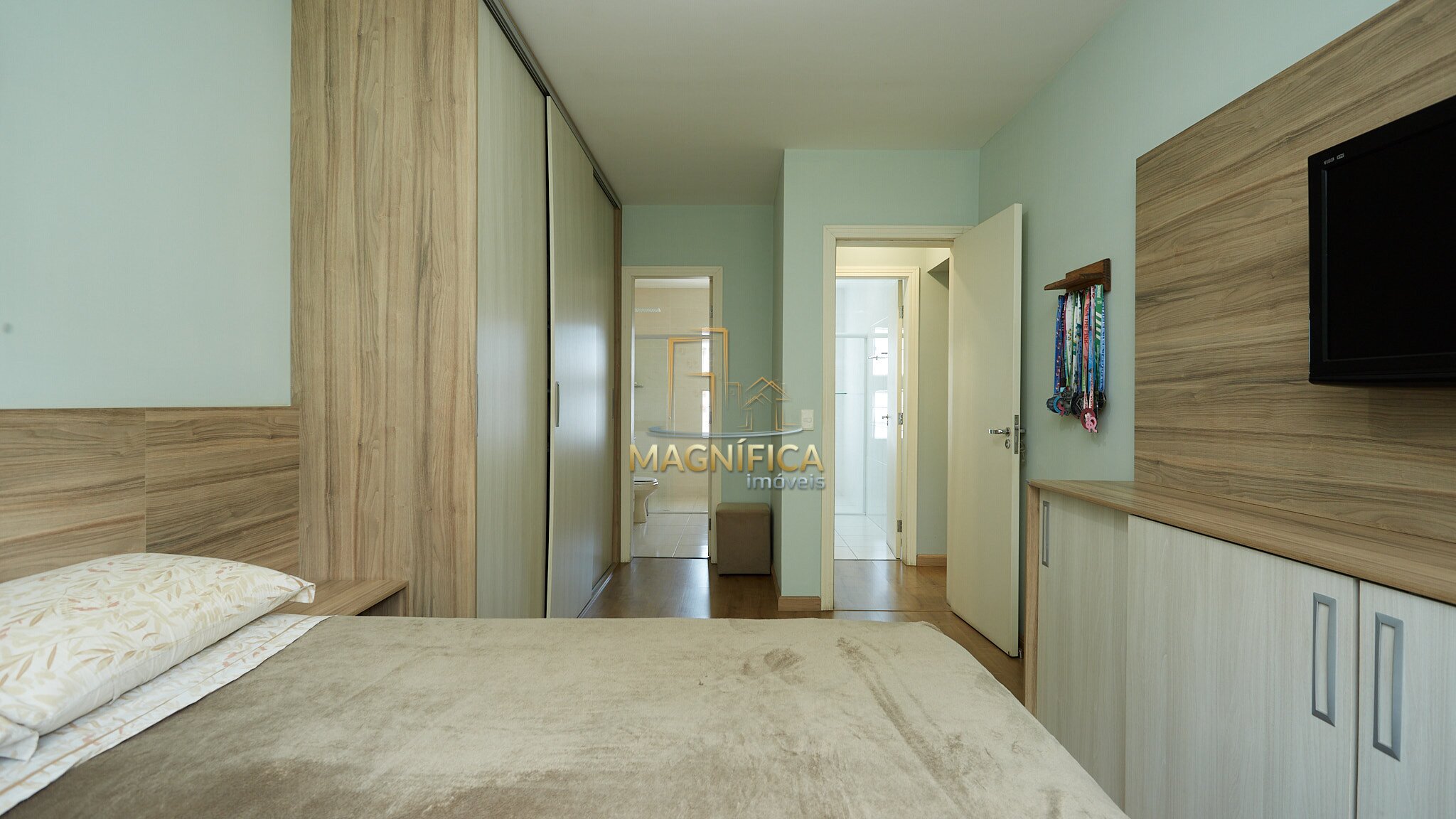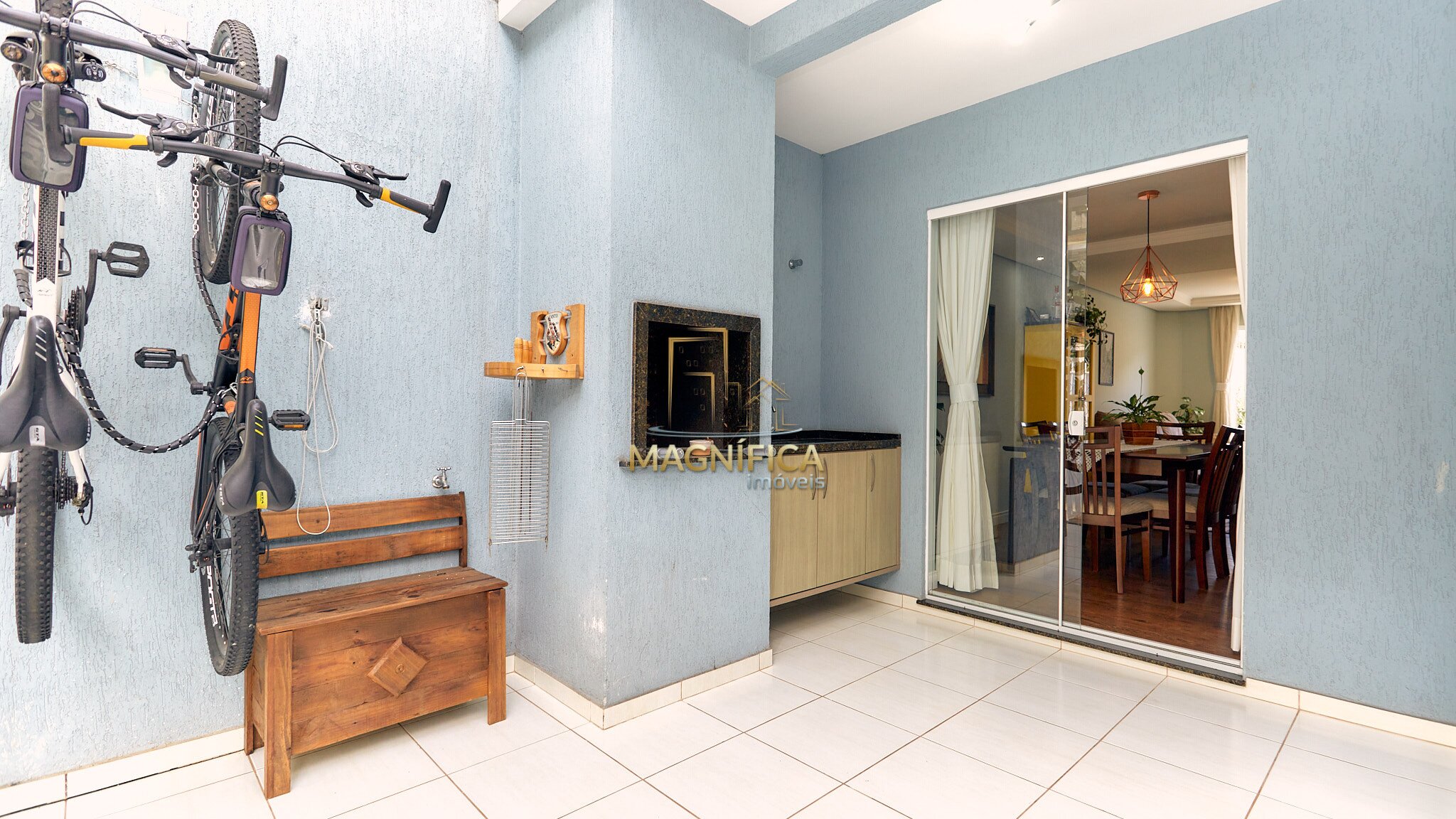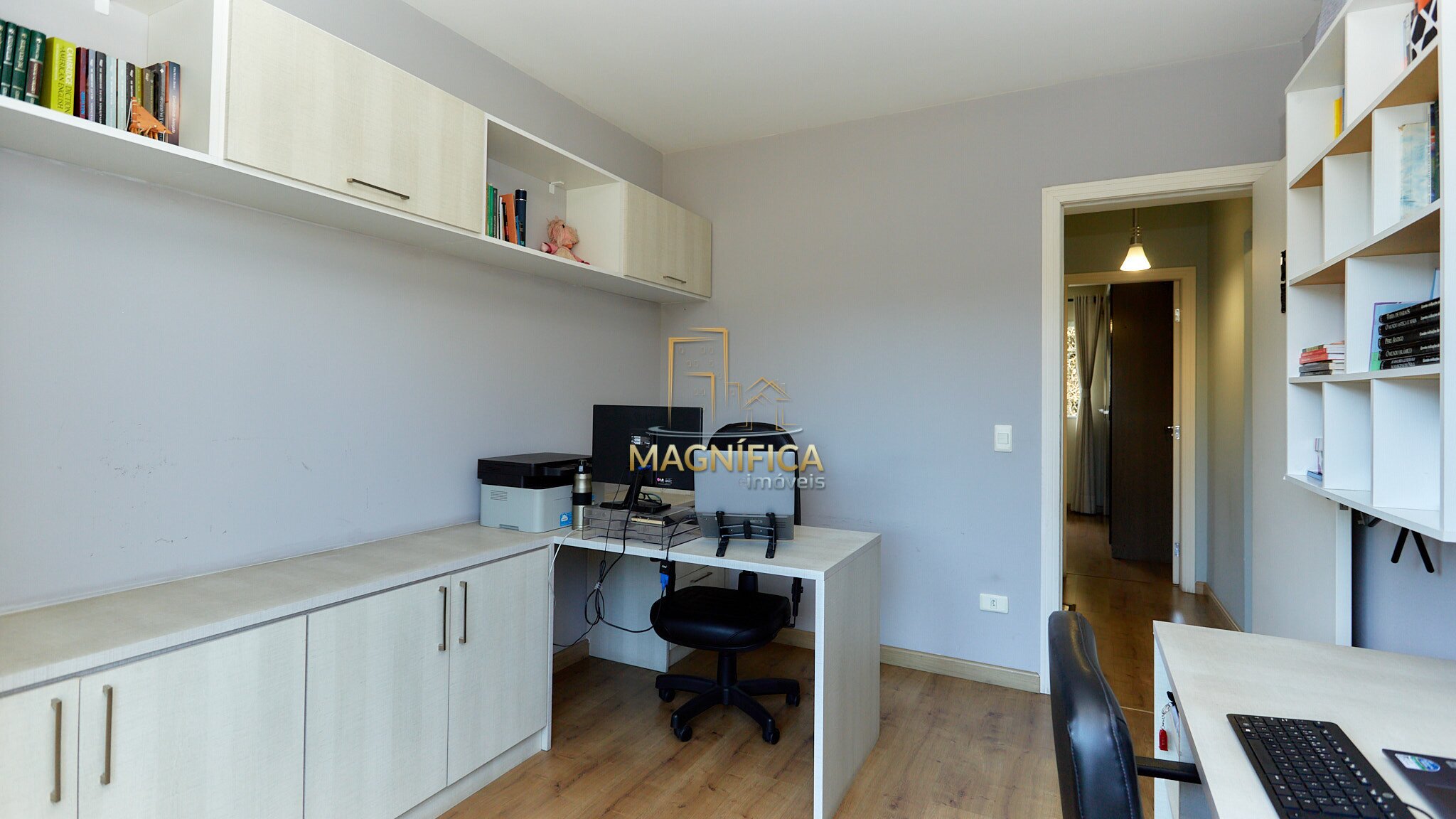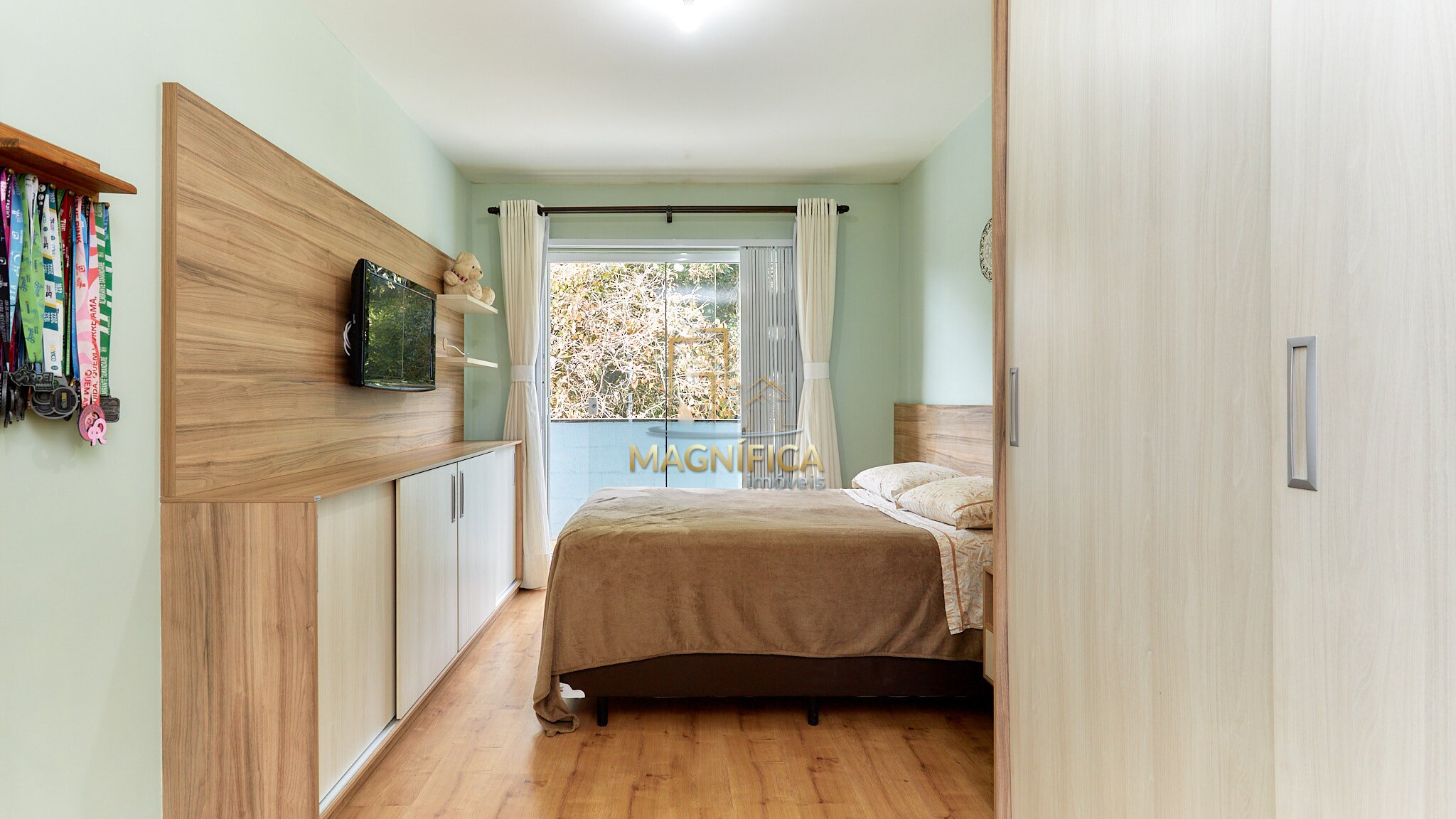 Suíte com Armários sob medida, segundo quarto com armário e terceiro quarto adaptado como escritório, com duas mesas e armários planejados. Sacada frontal no quarto e ampla sacada nos fundos (suíte) com linda vista para um bosque. Área de serviço com bancada em granito e tanque em inox. Espaço gourmet coberto com churrasqueira, pia em granito e armário sob medida. Portas de vidro com ventarolas, garantindo boa ventilação e iluminação natural. Amplo espaço aberto nos fundos. Aquecimento a gás nos banheiros e cozinha. Estrutura pronta para possível ampliação com ático. Todos os móveis fixos permanecem no imóvel.
