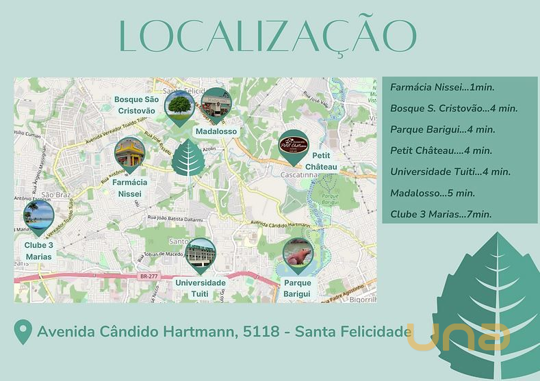 Aqui, você vai estar próximo de vários comércios, serviços, escolas e opções de lazer, garantindo praticidade no seu dia a dia. Santa Felicidade é conhecida por sua atmosfera tranquila, arborizada e pela alta qualidade de vida que oferece aos seus moradores.