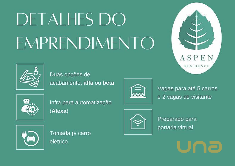O condomínio Aspen Residence, é composto por 20 casas, com 6 opções de plantas, mas cada uma com sua fachada exclusiva. Uma excelente opção para quem busca conforto, segurança e qualidade de vida.
