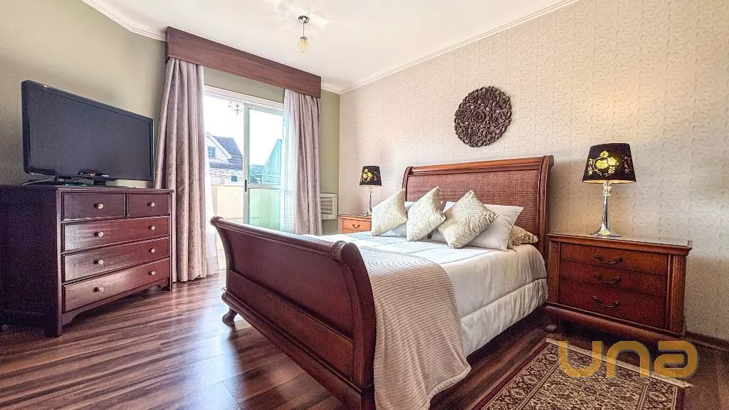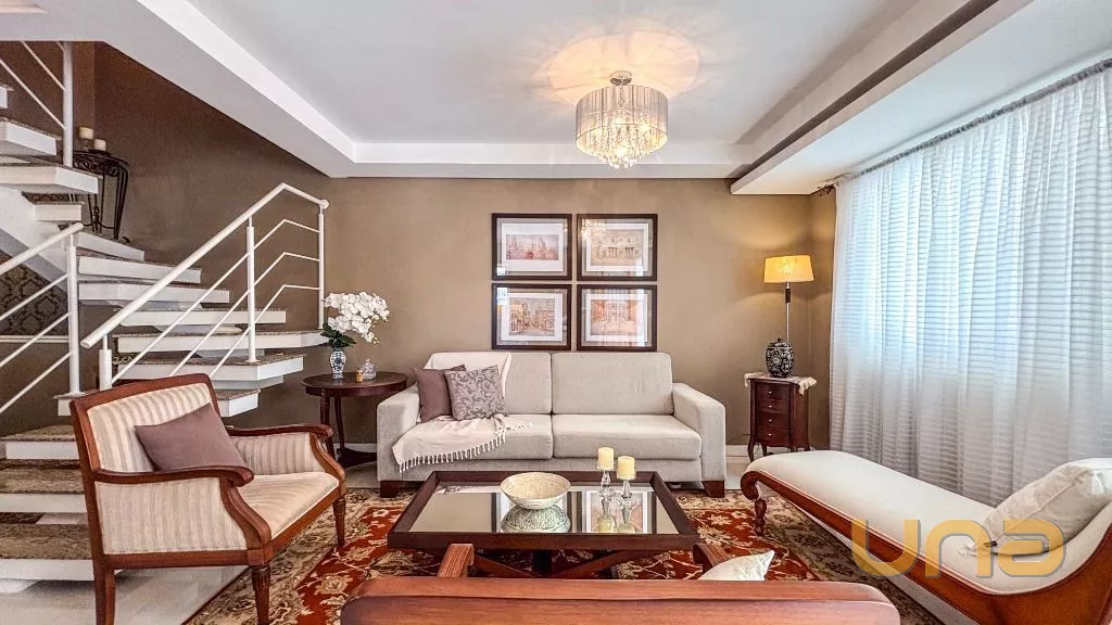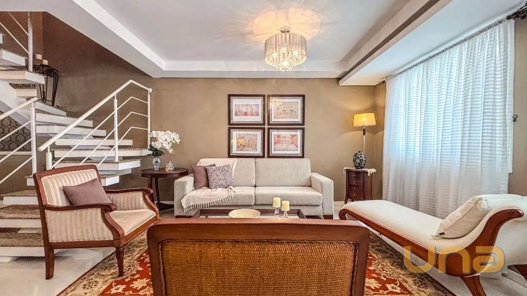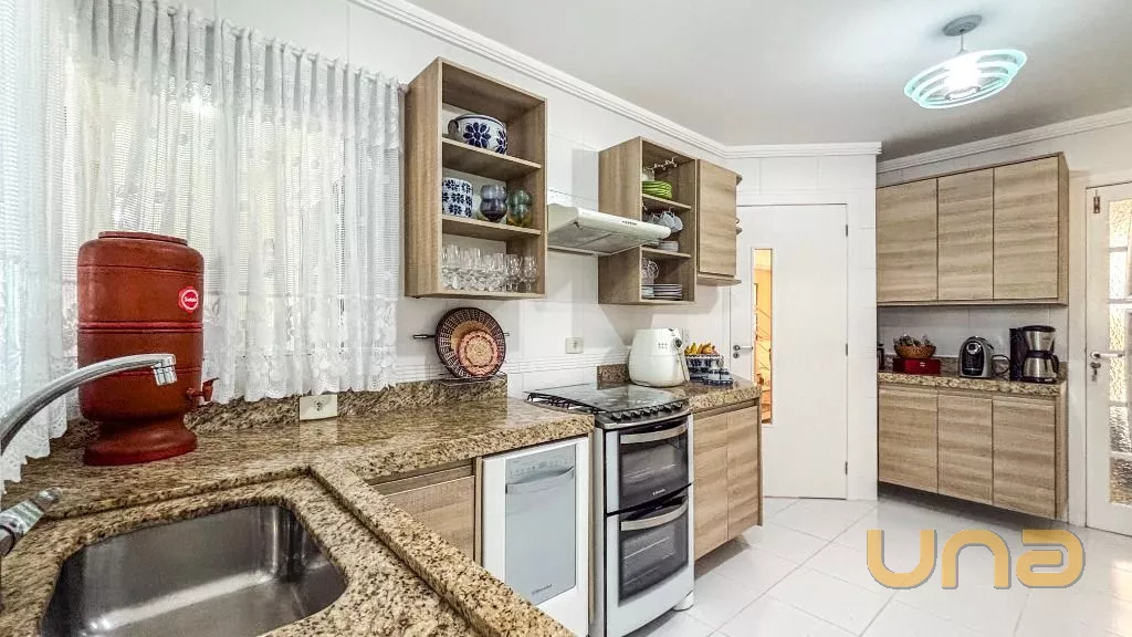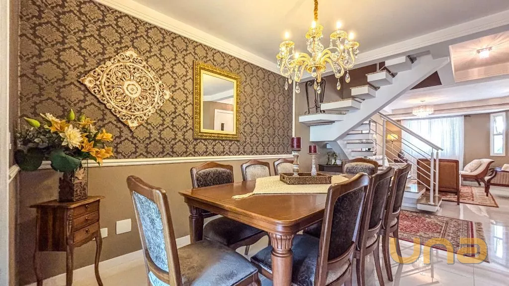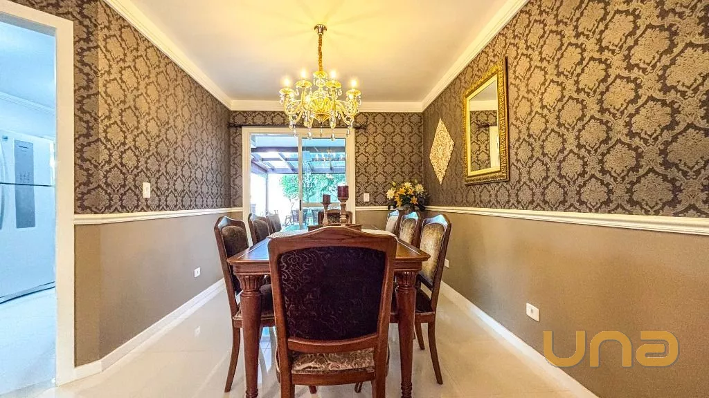 Belíssima casa em Santa Felicidade MOBILIADA ,uma excelente oportunidade para quem busca espaço, conforto e sofisticação. Com móveis planejados e em estado de conservação impecável, a casa está pronta para morar, oferecendo tudo o que você e sua família precisam. São 5 amplos quartos, incluindo uma suíte master com closet e banheiro privativo, 3 salas espaçosas, além de 4 banheiros bem distribuídos em todos os andares. A cozinha é equipada com móveis planejados e acabamentos de alta qualidade, e a área de lazer é integrada com forno combinado, além de uma área externa com vegetação e grama. As decorações elegantes agregam charme e sofisticação aos ambientes, tornando esta casa uma excelente escolha para quem deseja viver em uma das melhores localizações da cidade.