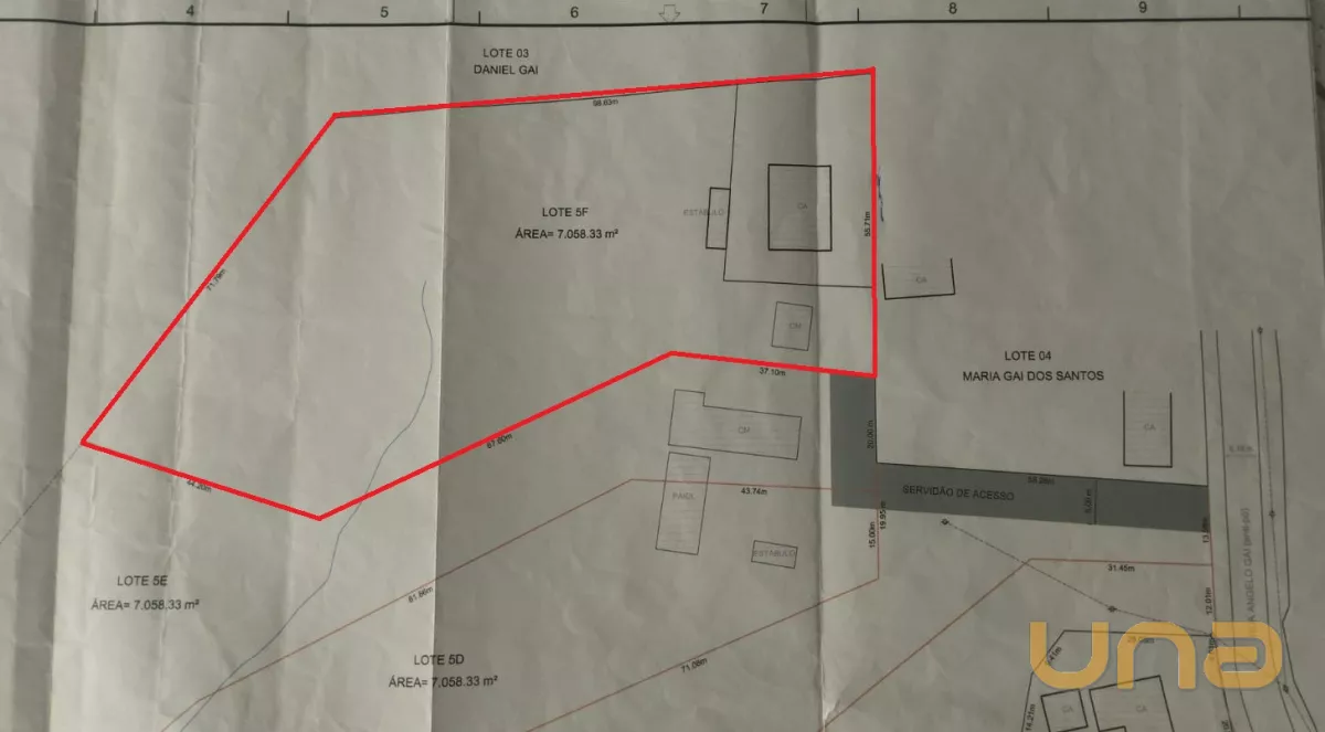 Terreno residencial com área de 7.058,33 m², com topografia plana e rodeado de muito verde, oferecendo um ambiente de paz, tranquilidade e contato direto com a natureza.