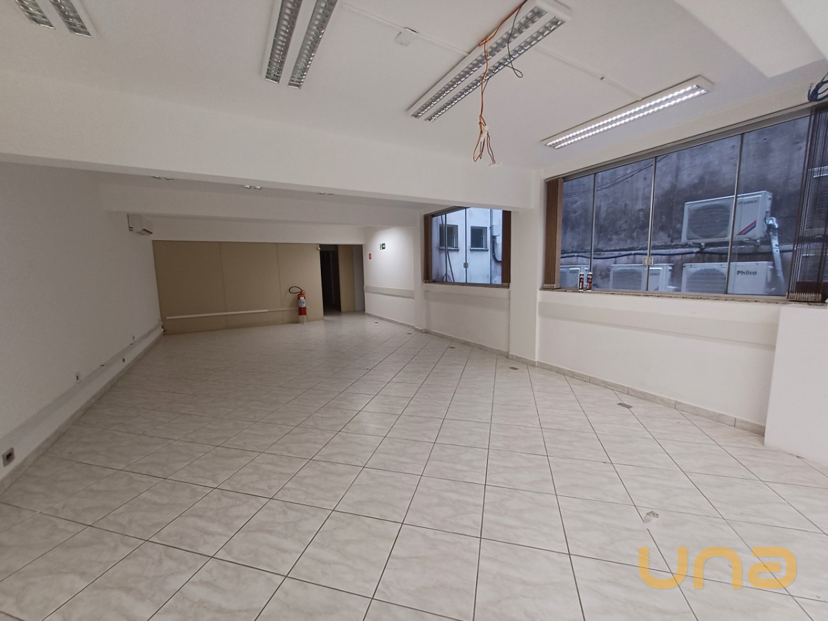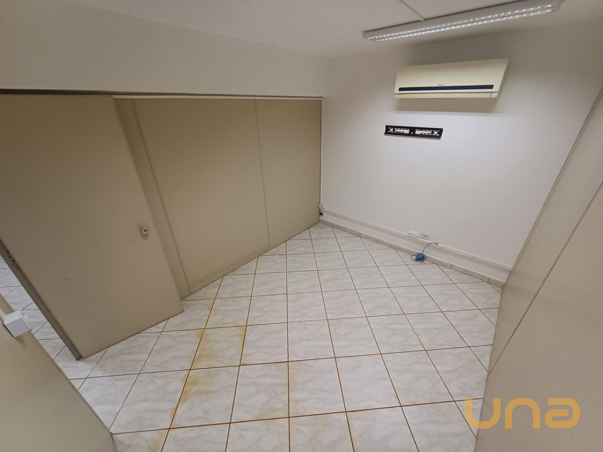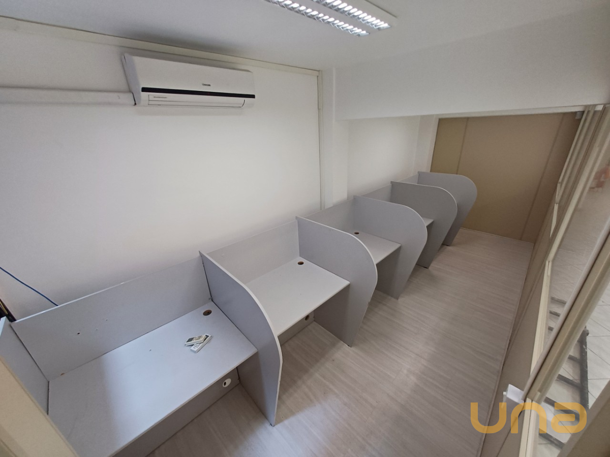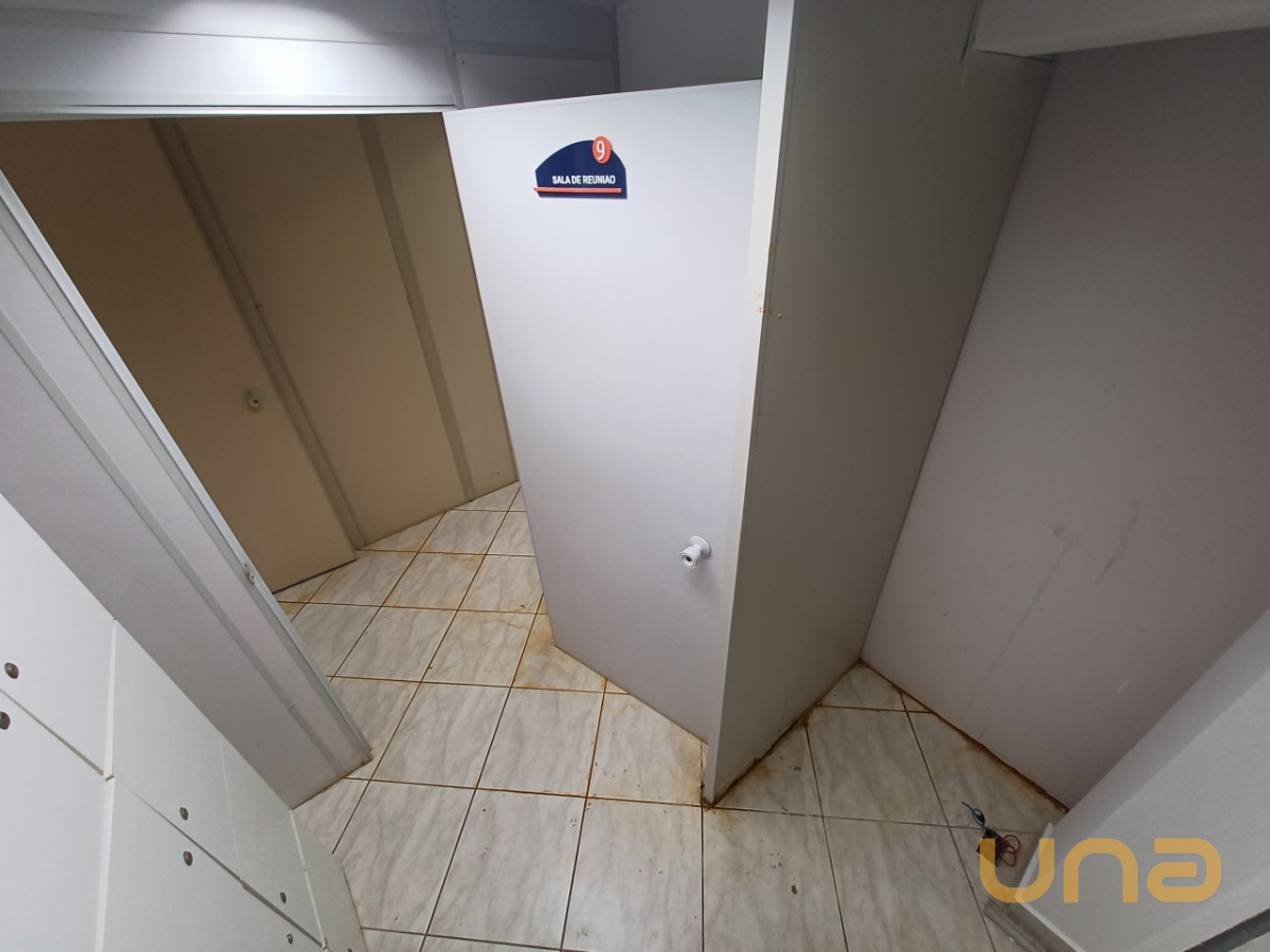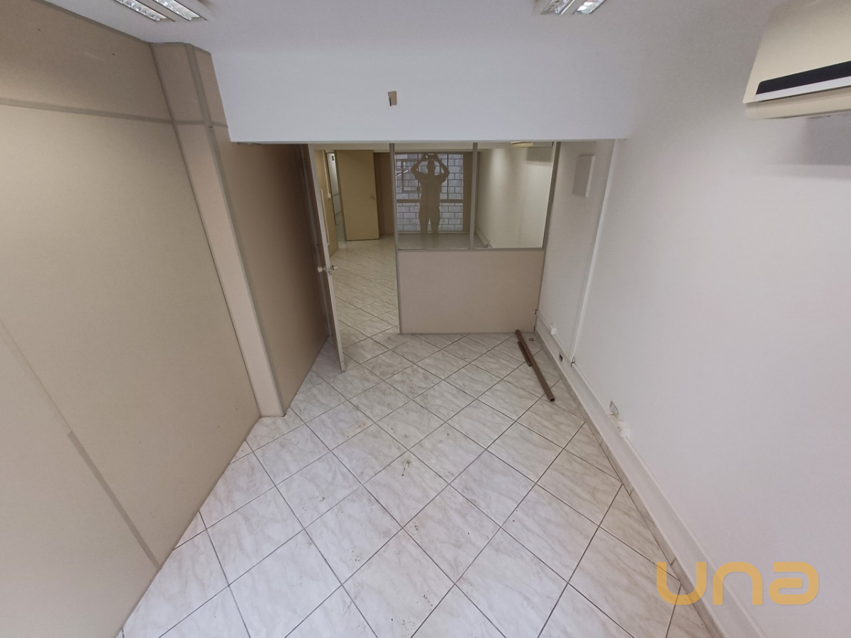 SALA ANDAR EM VÃO LIVRE E ALGUMAS DIVISÓRIAS EM DRY WALL, BANHEIROS SOCIAIS ADAPTADOS PARA ATIVIDADE COMERCIAL, HALL PARA PORTARIA, PISO CERÂMICO, SISTEMA DE AR CONDICIONADO