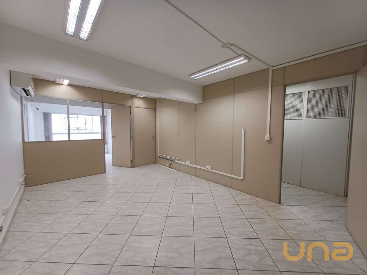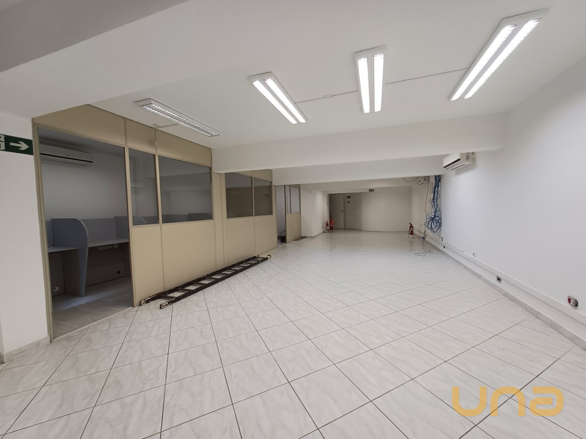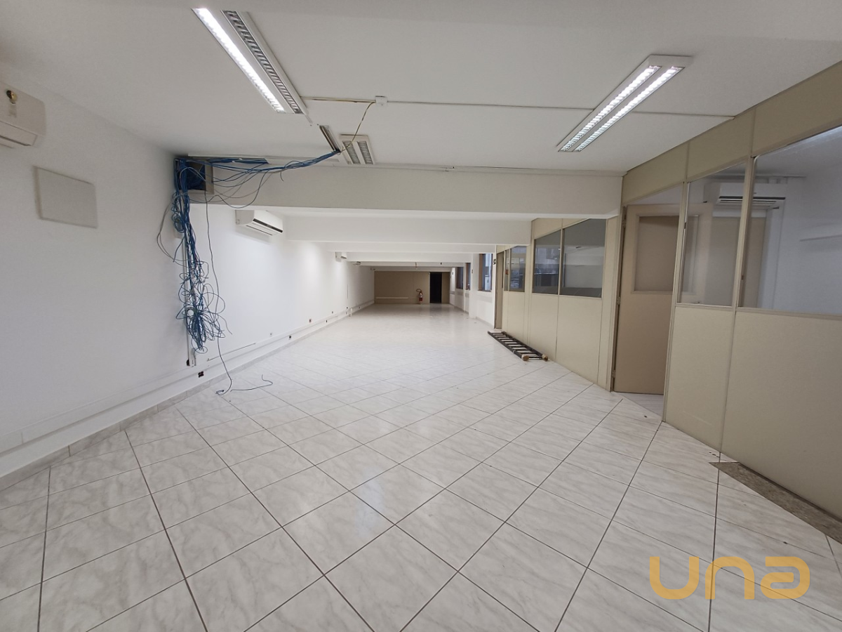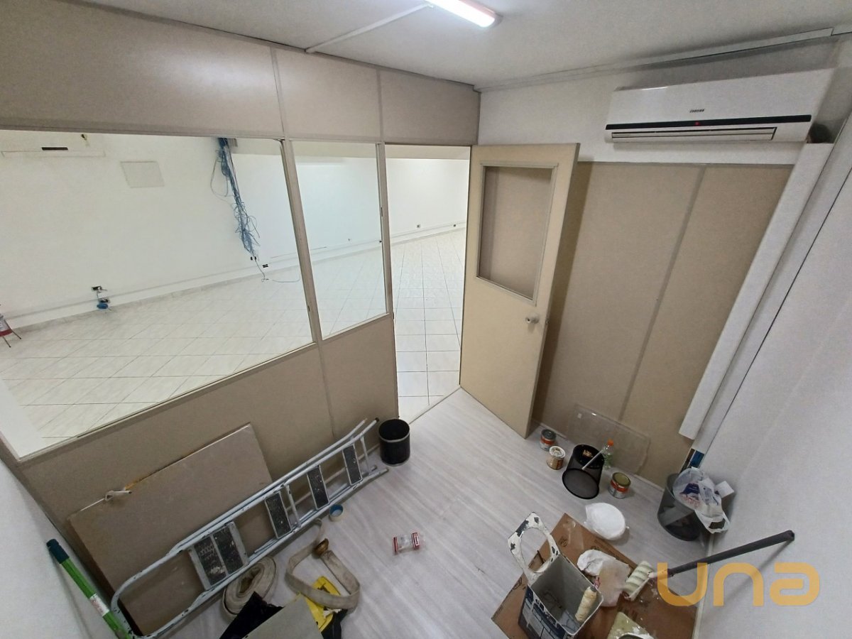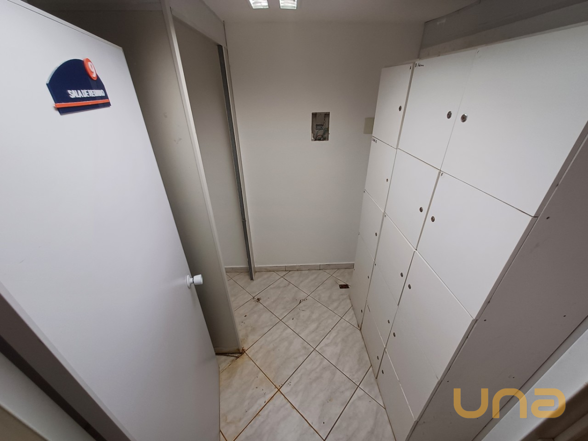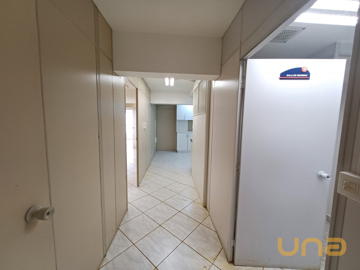 SALA ANDAR EM VÃO LIVRE E ALGUMAS DIVISÓRIAS EM DRY WALL, BANHEIROS SOCIAIS ADAPTADOS PARA ATIVIDADE COMERCIAL, HALL PARA PORTARIA, PISO CERÂMICO, SISTEMA DE AR CONDICIONADO