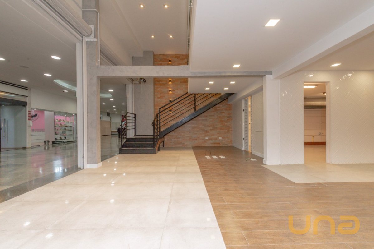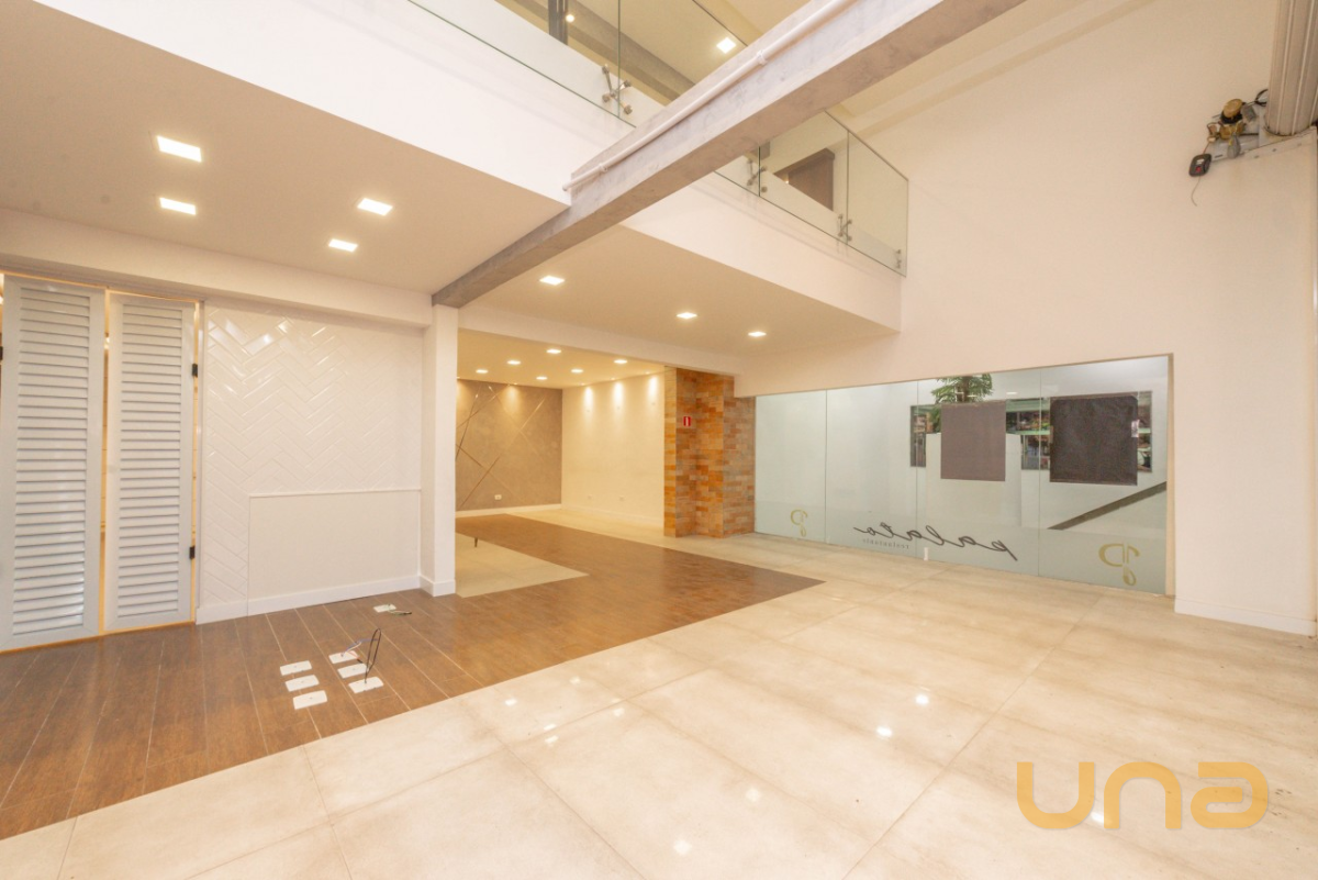 SÃO 2 LOJAS INTERLIGADAS COM SALÃO, COZINHA E BANHEIRO DE SERVIÇO NA PARTE INFERIOR E MEZANINO